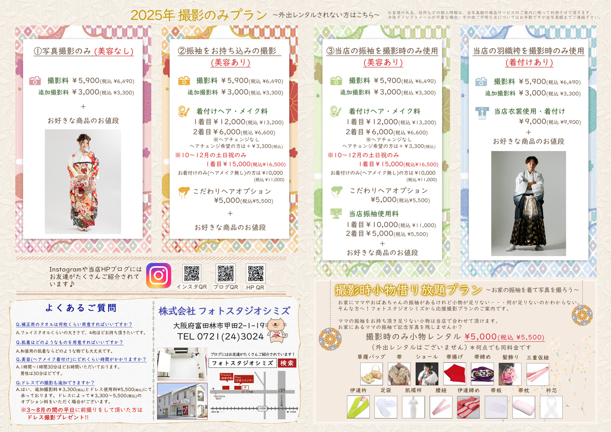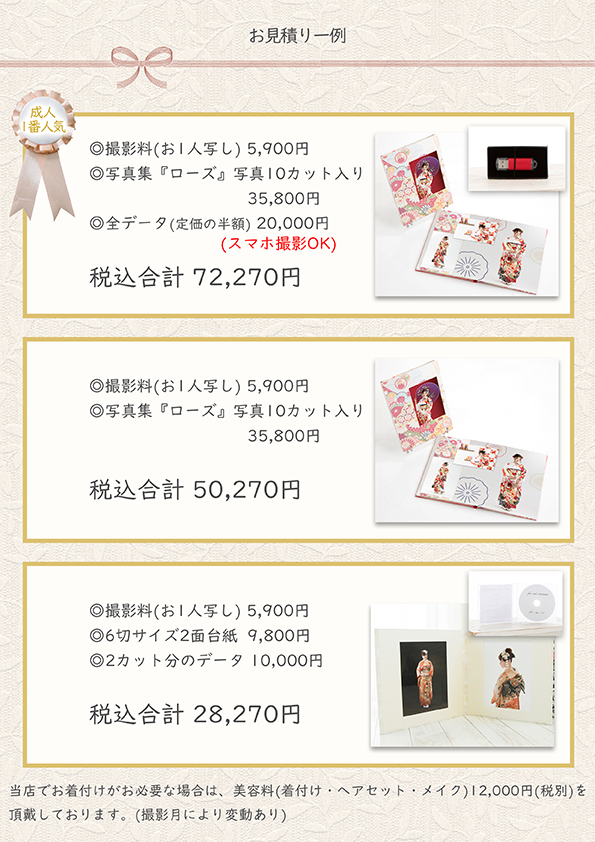 また、フォトスタジオシミズは、はたちの集い(旧名 成人式)の外出レンタルもお受けしています。