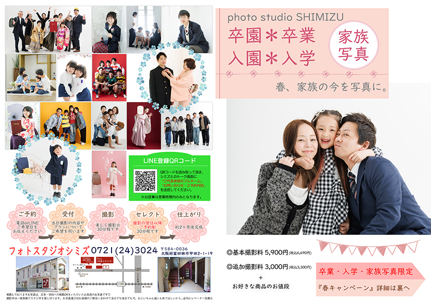 HOME > ブログ > 春の家族写真|入園・入学・卒園・卒業…人生の節目を大切に残す写真館の春撮影