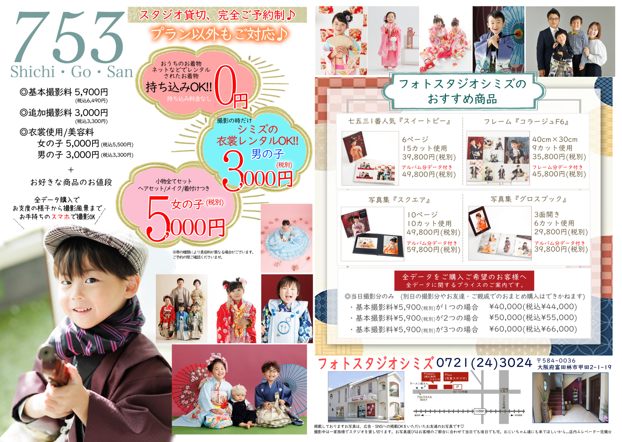 フォトスタジオシミズでは、七五三される方に